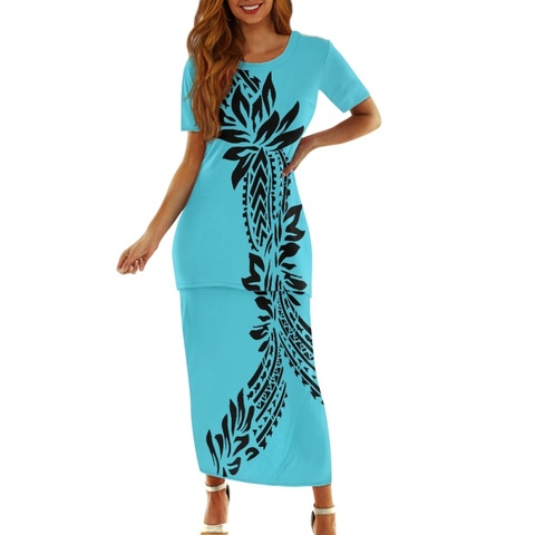 POD Samoan Puletasi cuello redondo vestidos casuales isla Maxi Vestido 2 uds vestido Tribal polinesio personalizado de talla grande ropa de mujer
