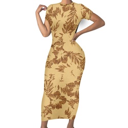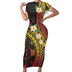 Tùy Chỉnh Hawaii Hoa Ngắn Tay Áo Váy Phụ Nữ Polynesian In Maxi Dress Bãi Biển Câu Lạc Bộ Bên Mặc Giản Dị Văn Phòng Ăn Mặc Bán Buôn
