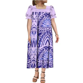 Tốt Nhất Người Bán Puff Tay Áo Cổ Vuông Của Phụ Nữ Ăn Mặc Giản Dị Polynesian In Ấn Micronesian Mumu Dresses