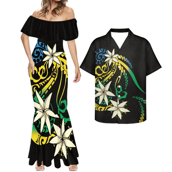 2025 Mới Nhất Polynesian Phù Hợp Với Vài Tùy Chỉnh Nàng Tiên Cá Ăn Mặc Và Người Đàn Ông Áo Sơ Mi Nhiệt đới Mô Hình Bộ Lạc 2Pcs Thiết Lập Bán Buôn