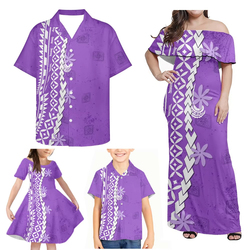 Biểu Tượng Tùy Chỉnh Polynesian Tribal Fijian In Dresses Vài Người Đàn Ông Aloha Áo Sơ Mi Phù Hợp Với Trang Phục Tắt Vai Phụ Nữ Ăn Mặc Giản Dị